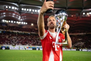 體育資訊8月17日訊 德國超級杯比賽,凱恩破門,幫助拜仁2-1擊敗斯圖加特,捧起冠軍獎(jiǎng)杯。