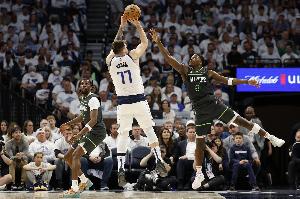 本場比賽,東契奇因右腿受傷提前下場,全場出戰(zhàn)17分鐘得到26分5助攻。2024年對陣森林狼的第五場比賽,東契奇出場37分鐘,22投14中砍下36分10籃板5助攻。