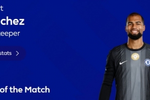 本場比賽切爾西門將羅伯特-桑切斯首發(fā)出戰(zhàn),貢獻(xiàn)4次撲救,幫助球隊完成零封,賽后他也當(dāng)選英超官方球迷票選全場最佳球員。