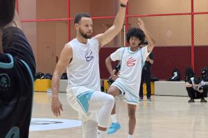 庫(kù)里以及庫(kù)里品牌簽約的首位中國(guó)球員、U19中國(guó)男籃主力后衛(wèi)朱正