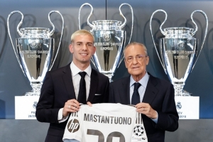 這位阿根廷小將自帶光環(huán),眼神中透著靈氣,極具魅力。即便那些從未看過他比賽的人,也會被他激起熱情。馬斯坦托諾擁有如絲綢般細膩的左腳技術(shù),總在場上主動要球,熱衷于挑戰(zhàn),還帶著阿根廷球員特有的賽場拼勁。我敢說,用不了多久馬斯坦托諾就能成為皇馬主力,他最終會與姆巴佩、維尼修斯組成皇馬鋒線三叉戟,我愿意為此打賭。