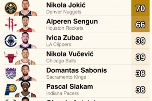 上賽季NBA自投自搶進(jìn)攻籃板數(shù)排名(沒有被封蓋的情況下)