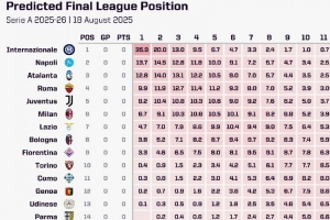 opta預(yù)測本賽季意甲奪冠概率: