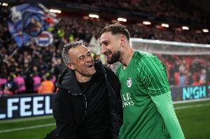 距離轉(zhuǎn)會窗口關(guān)閉還有11天,意大利門將多納魯馬仍然留在巴黎圣日耳曼。周四上午,他與路易斯-恩里克帶領(lǐng)的球隊一同參加了訓練,準備迎接周五在王子公園球場舉行的法甲第二輪對陣昂熱的比賽。