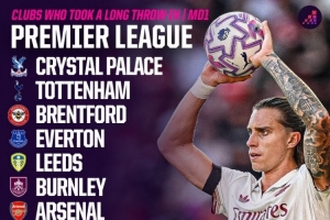 Opta指出,本賽季英超首輪共有11支球隊(duì)至少向?qū)Ψ浇麉^(qū)發(fā)出一次長(zhǎng)距離界外球,而上賽季首輪只有4支球隊(duì)這樣做。