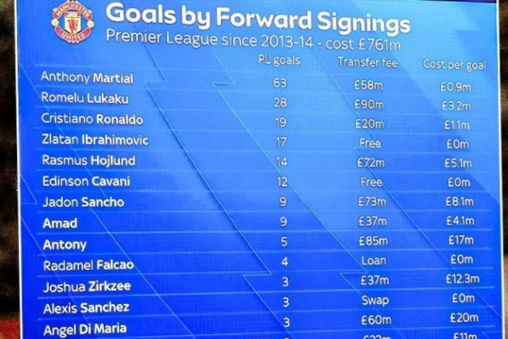自13/14賽季以來(lái),曼聯(lián)花費(fèi)7.61億鎊簽了14名前鋒,一共攻入191粒英超進(jìn)球。而薩拉赫2017年加盟利物浦,他至今已經(jīng)攻入了187粒英超進(jìn)球。