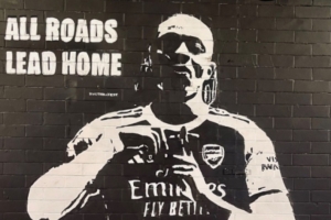 隨后在周三深夜,由藝術家“北班克西”創(chuàng)作的埃澤壁畫悄然出現(xiàn)在酋長球場外的隧道墻壁上,畫面中身著阿森納球衣的埃澤正在做出其標志性慶祝動作。