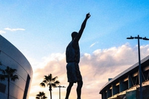 第二條動態(tài),湖人官推分享了球隊主場外的科比雕像,配文寫道:“曼巴永恒?!?/p>