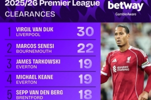 體育資訊8月28日訊 新賽季英超兩輪戰(zhàn)罷,據(jù)Squawka的數(shù)據(jù)統(tǒng)計,利物浦中衛(wèi)范迪克在兩場比賽中共有30次解圍,在所有球員中最多。