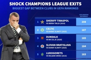體育資訊8月28日訊 歐冠附加賽次回合,凱爾特人在點(diǎn)球大戰(zhàn)中不敵阿拉木圖凱拉特,目送對(duì)手隊(duì)史首次闖進(jìn)歐冠正賽。根據(jù)德國轉(zhuǎn)會(huì)市場的統(tǒng)計(jì),凱爾特人本次被淘汰是歐冠歷史交鋒兩隊(duì)歐足聯(lián)積分差距第二大。