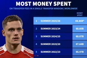 體育資訊08月29日訊 據(jù)德國轉(zhuǎn)會市場統(tǒng)計,截至目前,今夏全球轉(zhuǎn)會市場已經(jīng)支出約88.6億歐元的轉(zhuǎn)會費,刷新單個轉(zhuǎn)會窗的歷史紀錄,并且距離夏窗結(jié)束還有3天。