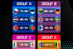 體育資訊08月31日訊 男籃歐錦賽當(dāng)?shù)貢r(shí)間8月30日的12場(chǎng)小組賽全部結(jié)束,詳細(xì)賽果如下: