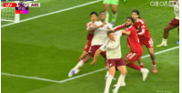 體育資訊09月01日訊 利物浦vs阿森納補時尾聲,回放給到索博斯洛伊禁區(qū)內(nèi)爭頂時肩膀、胳膊部位觸球,這下裁判沒有表示。