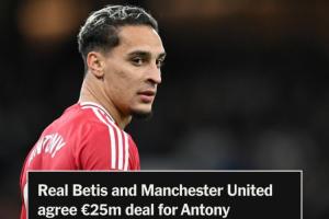 體育資訊09月01日訊 TA記者奧恩斯坦最新消息,曼聯(lián)與貝蒂斯就安東尼轉(zhuǎn)會(huì)達(dá)協(xié)議。