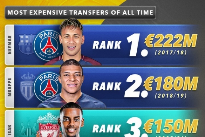 體育資訊9月2日訊 利物浦簽下25歲紐卡前鋒伊薩克,球員轉(zhuǎn)會(huì)費(fèi)1.3億英鎊(1.5億歐),足壇最貴轉(zhuǎn)會(huì)的排行榜也出現(xiàn)了變動(dòng)!