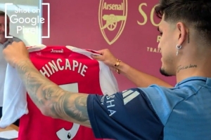 阿森納官方社媒曬出因卡皮耶身穿本隊球衣拍攝宣傳照的視頻,配文:“首次身穿著名的紅白戰(zhàn)袍亮相。”