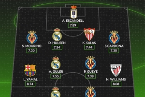 whoscored西甲8月最佳陣: