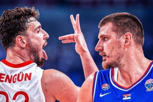 塞爾維亞今天輸給土耳其之后屈居小組第2,8/1決賽對陣芬蘭,他們和德國男籃同一個(gè)半?yún)^(qū),如果都一路晉級(jí),那么會(huì)在半決賽相遇。