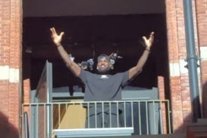 在上海站耐克官方舉行的“Forever King”活動開始前,詹姆斯在4樓的陽臺上張開雙臂向全場球迷問好。