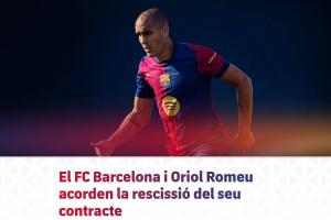 巴塞羅那足球俱樂部感謝奧里奧爾-羅梅烏展現(xiàn)出的職業(yè)精神、奉獻態(tài)度與全心投入,并祝愿他未來好運相伴、一切順利。