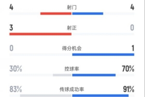 下一篇: 本菲卡1-0拜仁全場(chǎng)數(shù)據(jù):射門7-13,射正4-4,控球率27%-73%