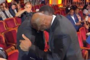 詹姆斯更新Instagram Story動(dòng)態(tài),轉(zhuǎn)發(fā)他在名人堂現(xiàn)場擁抱韋德的片段,并評論道:“很高興見到我的兄弟!?×??”