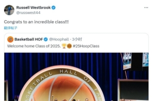 威少在社媒上向這屆名人堂成員送上了祝賀,寫道:“恭喜他們,了不起的一屆?。。 ?/p>