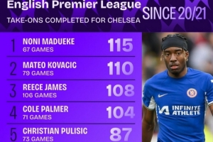 體育資訊9月7日訊 squakwa統(tǒng)計(jì)了20-21賽季以來(lái)的切爾西英超成功過(guò)人情況,馬杜埃凱居首,僅3人仍在陣中。