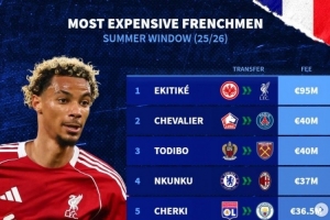 體育資訊9月8日訊 今夏主流聯(lián)賽轉(zhuǎn)會窗已經(jīng)關(guān)閉,《轉(zhuǎn)會市場》也列出了法國球員的今夏轉(zhuǎn)會費最貴情況。