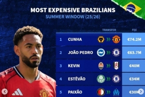 體育資訊9月8日訊 今夏主流聯(lián)賽轉(zhuǎn)會(huì)窗已經(jīng)關(guān)閉,《轉(zhuǎn)會(huì)市場》也列出了巴西球員的今夏轉(zhuǎn)會(huì)費(fèi)最貴情況。