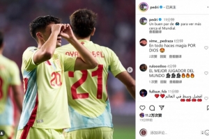 佩德里社媒曬出標(biāo)志性慶祝動(dòng)作,配文:“一副好??,讓我們更清楚地看到世界杯?!?/p>