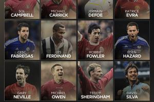 希勒、亨利、坎通納、羅伊-基恩、蘭帕德、博格坎普、杰拉德、貝克漢姆、魯尼、維埃拉、阿圭羅、德羅巴、孔帕尼、舒梅切爾、斯科爾斯、伊恩-賴特、弗格森、溫格、托尼-亞當(dāng)斯、切赫、費(fèi)迪南德、阿什利-科爾、安迪-科爾、特里