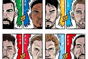 今天,歐錦賽官推曬出了8強(qiáng)對(duì)陣的海報(bào),預(yù)熱1/4決賽。