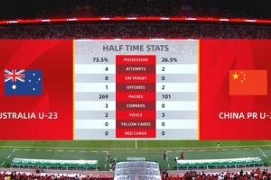 體育資訊09月09日訊 U23亞洲杯預(yù)選賽D組第3輪,澳大利亞U23半場0-0中國U22,半場數(shù)據(jù)統(tǒng)計(jì)如圖所示。
