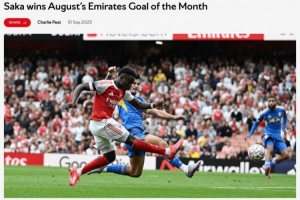 體育資訊9月11日訊 阿森納官方消息,薩卡對陣?yán)澛?lián)的抽射破門當(dāng)選8月隊(duì)內(nèi)最佳進(jìn)球。