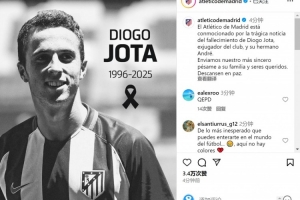 馬競(jìng)官方社媒寫道:“馬德里競(jìng)技俱樂(lè)部對(duì)前球員迪奧戈-若塔及其兄弟安德烈的不幸去世深感震驚,我們向其家人及親友致以最誠(chéng)摯的慰問(wèn)。愿他們安息。”