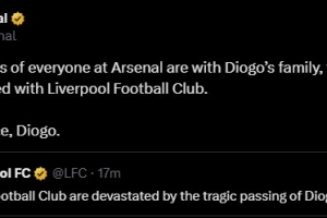 阿森納官推寫道:“阿森納俱樂部全體成員與若塔的家人、朋友以及利物浦足球俱樂部的所有人同在,愿若塔安息?!?/p> 利物浦前鋒若塔因車禍離世,年僅28歲