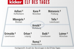 體育資訊9月15日訊 德甲第3輪比賽結(jié)束,《踢球者》公布了本輪評選的德甲最佳陣。