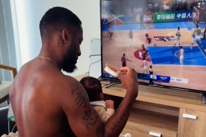 體育資訊9月15日訊 北京男籃外援杰曼今天更新社媒,曬出了帶娃一起看自己的CBA集錦的時(shí)刻。