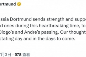 體育資訊7月3日訊 利物浦前鋒若塔及其弟弟安德烈因車禍離世,多特社媒留言哀悼。