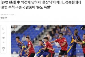 體育資訊09月17日訊 亞冠精英聯(lián)賽東亞區(qū)第1輪,成都蓉城客場1-2不敵蔚山HD,賽后韓媒spotv聲稱,有中國客場球迷朝韓國球員鄭升炫投擲水瓶。