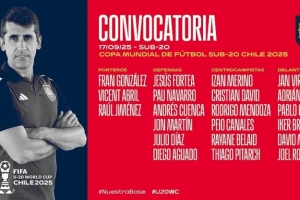 西班牙足協(xié)在官網(wǎng)寫道:“西班牙U20國家隊(duì)即將出征智利世界杯,21名年輕球員將肩負(fù)榮譽(yù)與夢(mèng)想,迎接這一全球最負(fù)盛名的青年足球賽事。主教練帕科-加拉爾多在周三公布了參賽名單,球隊(duì)將于9月22日啟程,以最佳狀態(tài)迎接比賽的到來。”