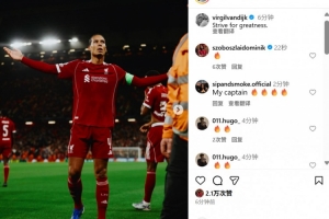 范迪克也在個(gè)人社媒曬出慶祝進(jìn)球照片,配文寫道:“努力追求偉大!”