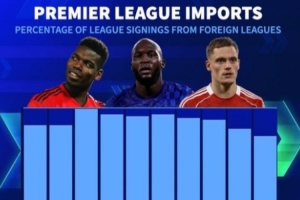 以下為近10年英超俱樂(lè)部從其他聯(lián)賽引援比例情況: