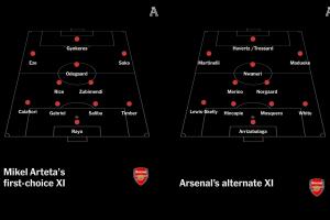 體育資訊09月19日訊 The Athletic撰文列出了阿森納的兩套首發(fā),展示了球隊(duì)的陣容深度,全隊(duì)總身價(jià)13.3億歐。此外,TA還預(yù)測(cè)了一下本周末阿森納出戰(zhàn)曼城時(shí),首發(fā)11人可能的布陣。