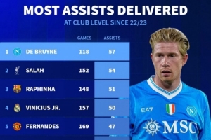 體育資訊9月19日訊 那不勒斯在昨晚歐冠焦點(diǎn)戰(zhàn)客場(chǎng)0-2不敵曼城,迎戰(zhàn)舊主的德布勞內(nèi)因戰(zhàn)術(shù)調(diào)整而早早被換下。不過(guò)《轉(zhuǎn)會(huì)市場(chǎng)》統(tǒng)計(jì)顯示,他仍然是最近3年俱樂(lè)部層面送出助攻最多的球員。