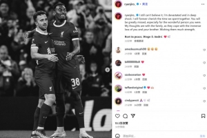 體育資訊7月4日訊 利物浦前鋒若塔因車禍去世,年僅28歲。隊友赫拉芬貝赫通過社媒送上悼念: