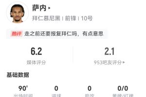 體育資訊06月25日訊 世俱杯小組賽C組末輪,拜仁0-1本菲卡丟掉了小組第一的位置。本場比賽也是薩內(nèi)代表拜仁參加的最后一場比賽,但他以糟糕的表現(xiàn)結(jié)束了自己的拜仁生涯。