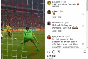 登貝萊老東家多特官方更新社媒動態(tài),曬出登貝萊效力多特期間精彩進球的視頻,配文:“現(xiàn)在他已是金球獎得主?!?/p>