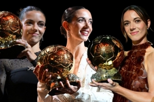 金球獎官方曬出邦馬蒂的海報,祝賀她連續(xù)3年斬獲女足金球獎。
